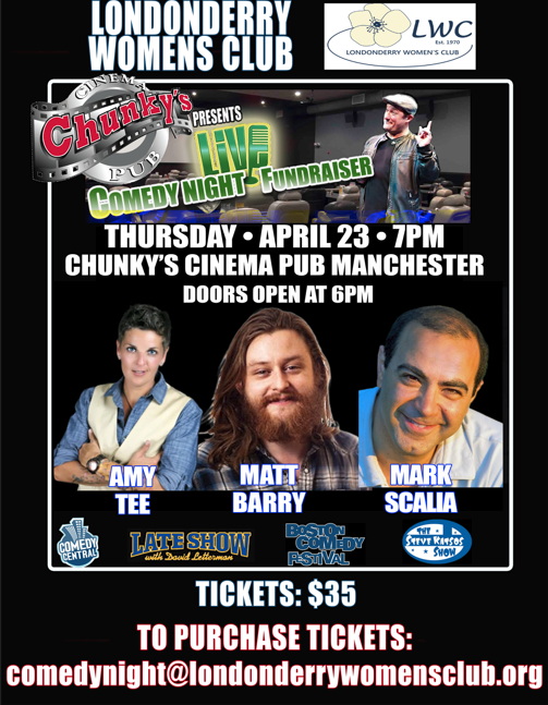 The Londonderry Women’s Club annual Comedy Night is our largest fundraiser of the year. Featuring a variety of comics and raffles from our generous sponsors, it’s a fun night out that supports the club’s community outreach.